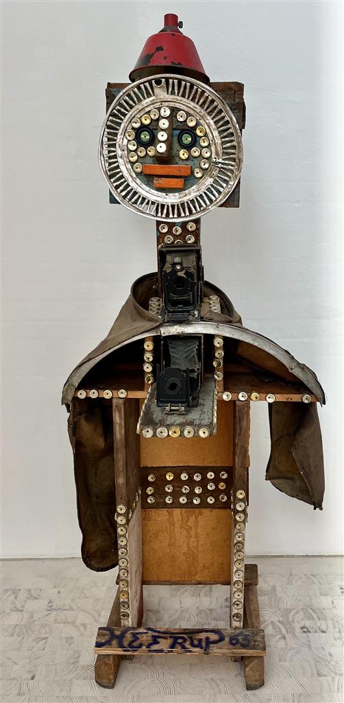 Ideen om et cyklisk materialebrug og en sammenstykning af hverdagens genstande resonerer i høj grad med skraldepioneren Heerup, der foruden at male gennem hele sit liv også fandt værdi i kasserede ting, som han indsamlede og lavede til ny kunst. Særlig ikonisk er hans skraldefigur ‘Fotografen’, der kan opleves på udstillingen side om side med Farshad Farzankias kunst.