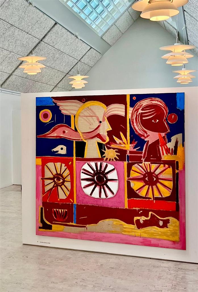 ‘Din Mor er min Mor fra en anden Mor’, står der skrevet på den aktuelle udstillingsplakat, der hænger foran Heerup Museum i Rødovre – en tretrinsraket af en sproglig, cyklisk navlestreng, som allerede inden jeg går ind på museet har slået en stemning af samhørighed an. ‘Din Mor er min Mor fra en anden Mor’ gentager jeg for mig selv – nysgerrig på, hvad denne sætning mon helt præcis vil sige mig? Heerups kunstneriske virke er jeg som mange andre bekendt med. Hans ikoniske skraldefigurer og farverige værker har en motivverden, der bærer præg af en evindelig tro på, at også hverdagslivet kan ophøjes til noget mytisk og fantasifuldt. Det er netop med rod i denne universelle fortællekraft, at den iranskfødte samtidskunstner Farshad Farzankia i samklang med Heerups værker, udfolder den cykliske grundtese, der møder mig allerede i læsningen af den titel, som viser sig at skabe klangbund for hele udstillingen.