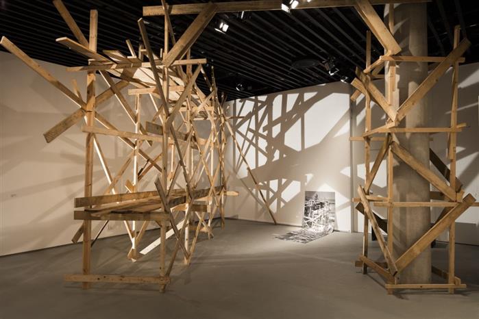 I et hjørne af udstillingen kan man få lov til se nærmere på, hvordan de to kunstnere har arbejdet med materialet fra Det Kongelige Biblioteks billedarkiv. Man får således svaret på, hvordan man bygger med billeder. På samme måde som de to kunstnere har forsøgt at blotlægge linjer og konstruktioner i arkitekturen, får man som beskuer lov til at se de bærende elementer og konstruktioner i deres værker.