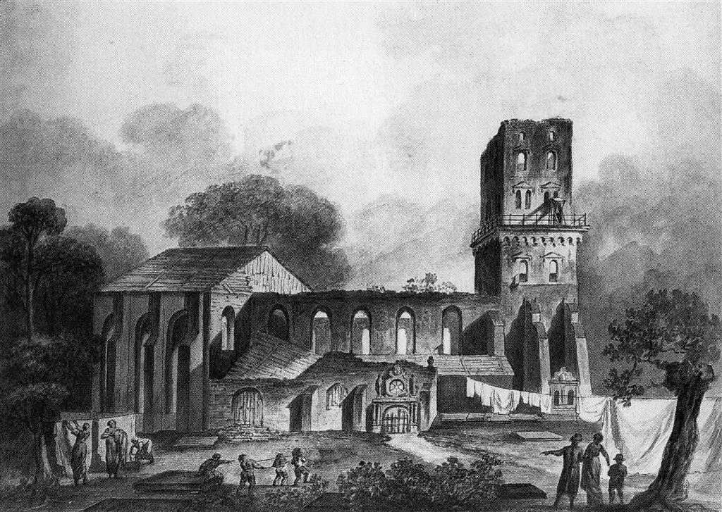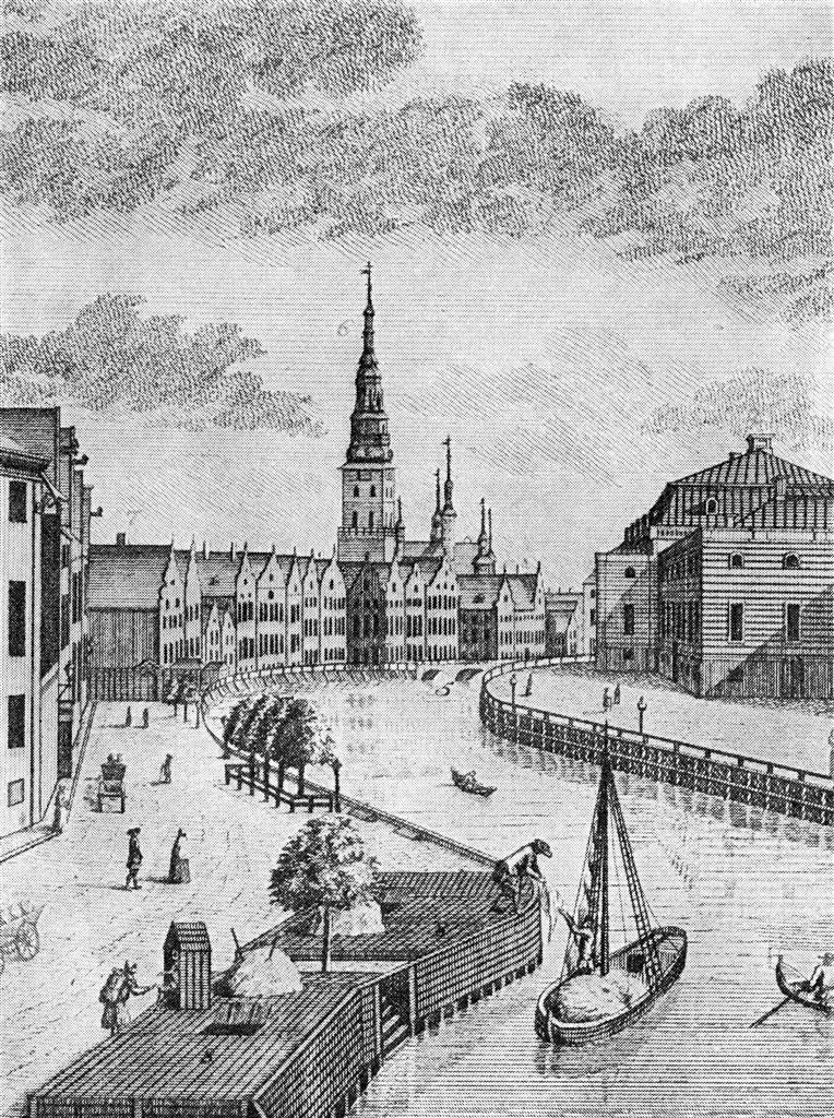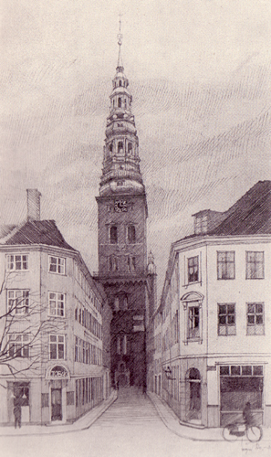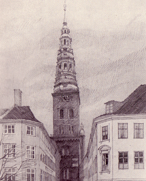 Tegning: Sct. Nicolai Kirke efter den store brand i år 1795