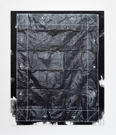 Gardar Eide Einarsson med værket Black Poly Pickup & Dump Truck Tarp I, 2015 - Foto: Mads Frederik.
