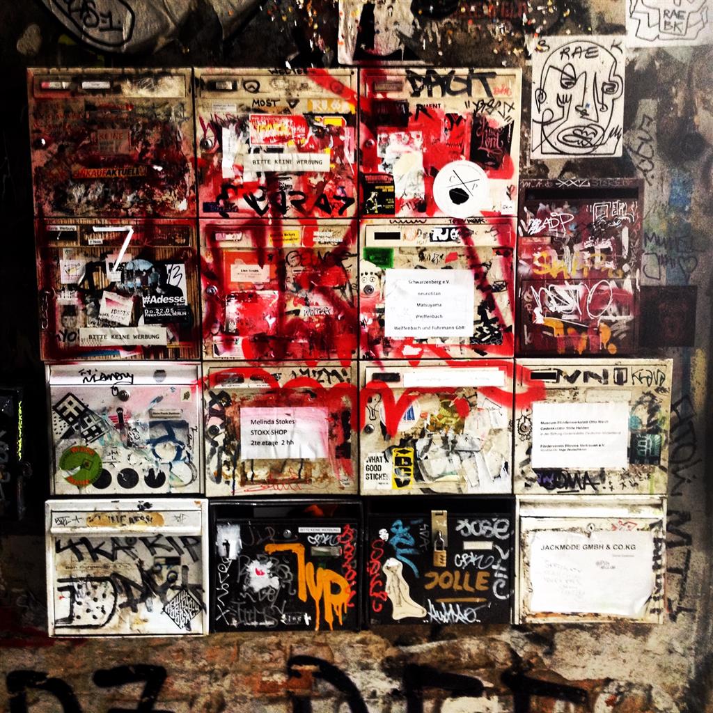 På Rosenthalerstrasse, som ligger i kvarteret ”Spandauer Vorstadt”, kan man med fordel gå hen til nummer 39 og ind i gården, hvor murerne ikke har en eneste ubemalet plet. Det er et virvar af farver, der åbenbarer sig i alle tænkelige figurer. Der er malet historiske personer, skeletter, lommefilosofiske citater, ubestemmelige figurer side om side med forfaldne plakater og flyers. Og man kan komme tilbage hver gang, man er i Berlin – der bliver nemlig jævnligt malet ovenpå. Det eneste værk, der ikke må males over, er et maleri af Anne Frank. I øvrigt ligger der et lille Anne Frank-museum ”Anne Frank Zentrum” i selvsamme gård, som jeg virkelig kan anbefale.